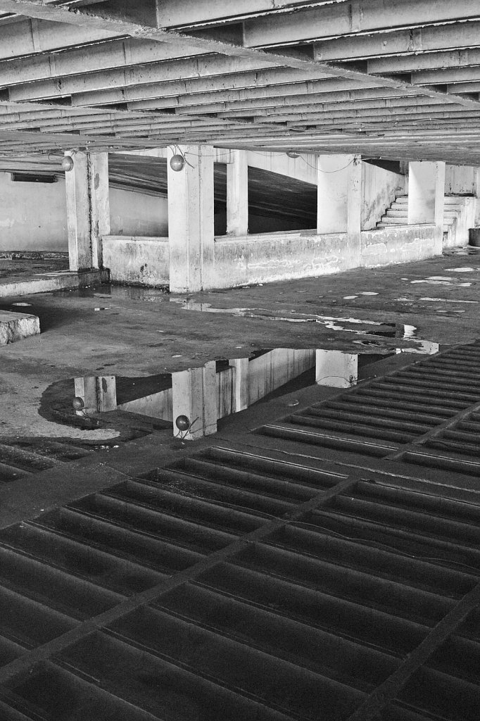 Snowmelt in a garage in Ramallah reflecting the structure of the ceiling